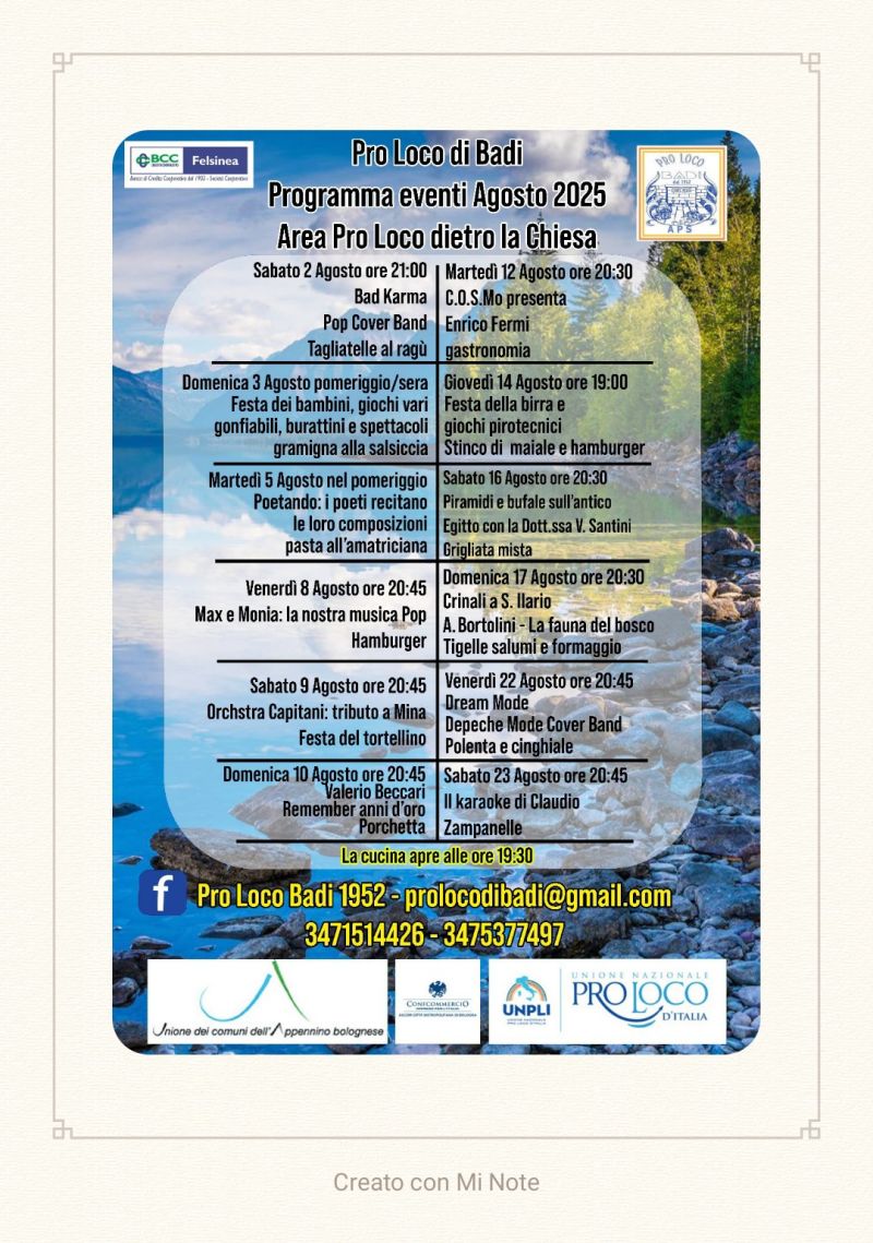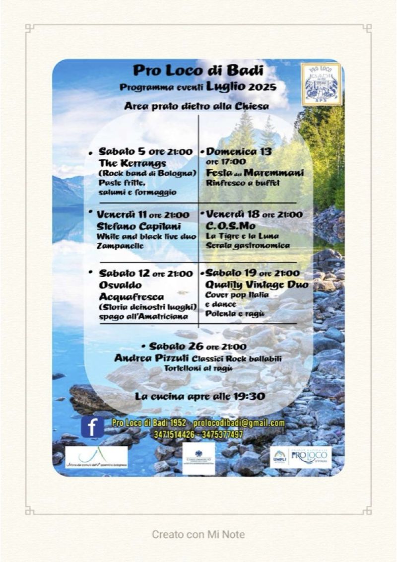 Riepilogo eventi estate 2025